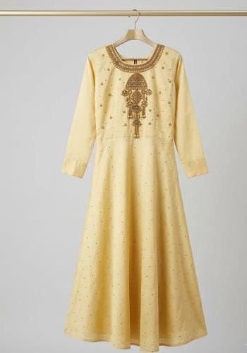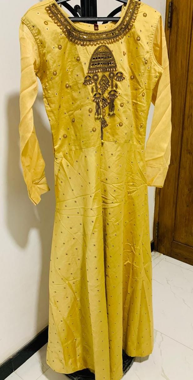 Yellow embellished gown with antique gold stone work